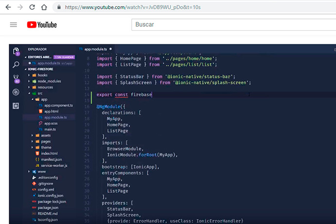 videocam Youtube Creación de aplicación híbrida usando Ionic y Firestore.